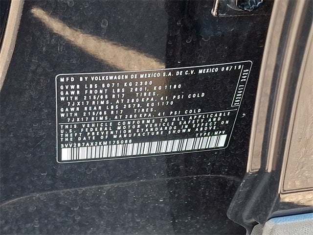 This Vehicle Includes the Following Options: Panoramic Sunroof Package, AWD, 2-Row Rubber Mats Kit, 3.33 Axle Ratio, 4-Wheel Disc Brakes, 4-Wheel Independent Suspension, 6 Speakers, ABS brakes, Air Conditioning, Alloy wheels, AM/FM radio: SiriusXM, Automatic temperature control, Brake assist, Bumpers: body-color, Compass, Delay-off headlights, Driver door bin, Driver vanity mirror, Dual front impact airbags, Dual front side impact airbags, Electronic Stability Control, Exterior Parking Camera Rear, First Aid Kit, Forward collision: FCW w/Autonomous Emergency Braking mitigation, Four wheel independent suspension, Front anti-roll bar, Front Bucket Seats, Front Center Armrest, Front dual zone A/C, Front reading lights, Fully automatic headlights, Heated door mirrors, Heated Front Comfort Seats, Heated front seats, Heavy Duty Trunk Liner w/VW CarGo Blocks, Illuminated entry, Leather Shift Knob, Low tire pressure warning, Occupant sensing airbag, Outside temperature display, Overhead airbag, Overhead console, Panic alarm, Passenger door bin, Passenger vanity mirror, Perforated V-Tex Leatherette Seating Surfaces, Power door mirrors, Power driver seat, Power steering, Power windows, Radio data system, Radio: Composition Media AM/FM/HD, Rear anti-roll bar, Rear reading lights, Rear seat center armrest, Rear window defroster, Rear window wiper, Remote CD player, Remote keyless entry, Roadside Assistance Kit, Roof rack: rails only, Security system, Speed control, Speed-sensing steering, Split folding rear seat, Spoiler, Steering wheel mounted audio controls, Tachometer, Telescoping steering wheel, Tilt steering wheel, Traction control, Trip computer, Turn signal indicator mirrors, Variably intermittent wipers, VW Care, and Wheels: 17 Wide Multi-Spoke 2-Tone Alloy.