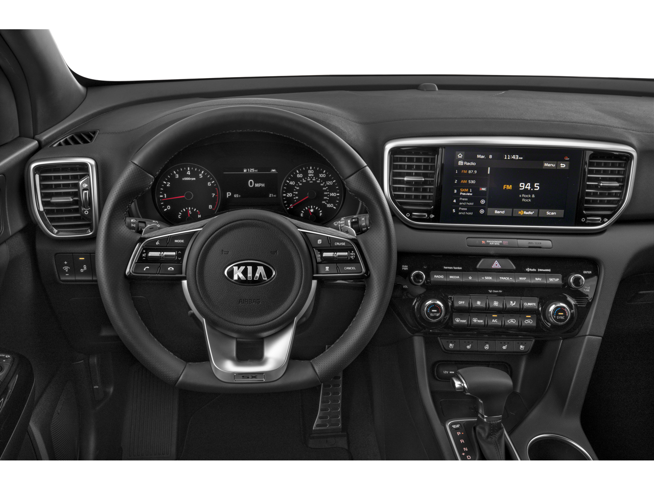 - Radio: AM/FM/SiriusXM Audio System -inc: 8" touchscreen, navigation, 8 speakers including subwoofer, 320 watt harman/kardon premium audio, Clari-Fi, UVO telematics, Apple CarPlay & Android Auto, voice recognition, USB/aux input ports, wireless phone charging, steering wheel controls and Bluetooth® w/audio streaming