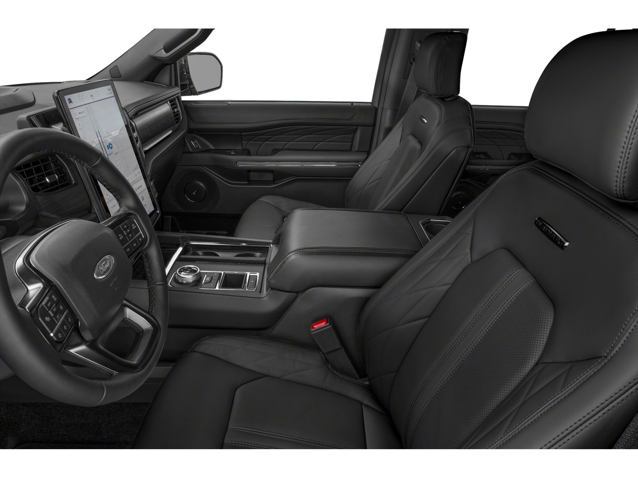 THIS VEHICLE INCLUDES THE FOLLOWING FEATURES AND OPTIONS: Equipment Group 600A Standard Package, 4WD, 22 Speakers, 3.31 Axle Ratio, 3rd row seats: split-bench, 4-Wheel Disc Brakes, ABS brakes, Adaptive suspension, Adjustable pedals, Air Conditioning, Alloy wheels, AM/FM radio: SiriusXM with 360L, Auto High-beam Headlights, Auto-dimming door mirrors, Auto-dimming Rear-View mirror, Automatic temperature control, Brake assist, Bumpers: body-color, Compass, Delay-off headlights, Driver door bin, Driver vanity mirror, Dual front impact airbags, Dual front side impact airbags, Electronic Stability Control, Emergency communication system: SYNC 4 911 Assist, Exterior Parking Camera Rear, Four wheel independent suspension, Front anti-roll bar, Front Bucket Seats, Front Center Armrest, Front dual zone A/C, Front fog lights, Front License Plate Bracket, Front reading lights, Fully automatic headlights, Garage door transmitter, Genuine wood console insert, Genuine wood dashboard insert, Genuine wood door panel insert, Heated door mirrors, Heated front seats, Heated rear seats, Heated steering wheel, Heated/Ventilated Prem Lthr Front Captain's Chairs, Illuminated entry, Leather steering wheel, Low tire pressure warning, Memory seat, Navigation system: Connected Navigation, Occupant sensing airbag, Outside temperature display, Overhead airbag, Overhead console, Panic alarm, Passenger door bin, Passenger vanity mirror, Pedal memory, Power door mirrors, Power driver seat, Power Liftgate, Power moonroof, Power passenger seat, Power steering, Power windows, Radio data system, Radio: B&O Unleashed Sound System by Bang & Olufsen, Rain sensing wipers, Rear air conditioning, Rear anti-roll bar, Rear audio controls, Rear reading lights, Rear window defroster, Rear window wiper, Reclining 3rd row seat, Remote keyless entry, Security system, SiriusXM w/360L, Speed control, Speed-sensing steering, Speed-Sensitive Wipers, Split folding rear seat, Spoiler, Steering wheel memory, Steering wheel mounted audio controls, SYNC 4 w/Enhanced Voice Recognition, Tachometer, Telescoping steering wheel, Tilt steering wheel, Traction control, Trip computer, Turn signal indicator mirrors, Variably intermittent wipers, Ventilated front seats, Voltmeter, and Wheels: 22 12-Spoke Polished Aluminum.