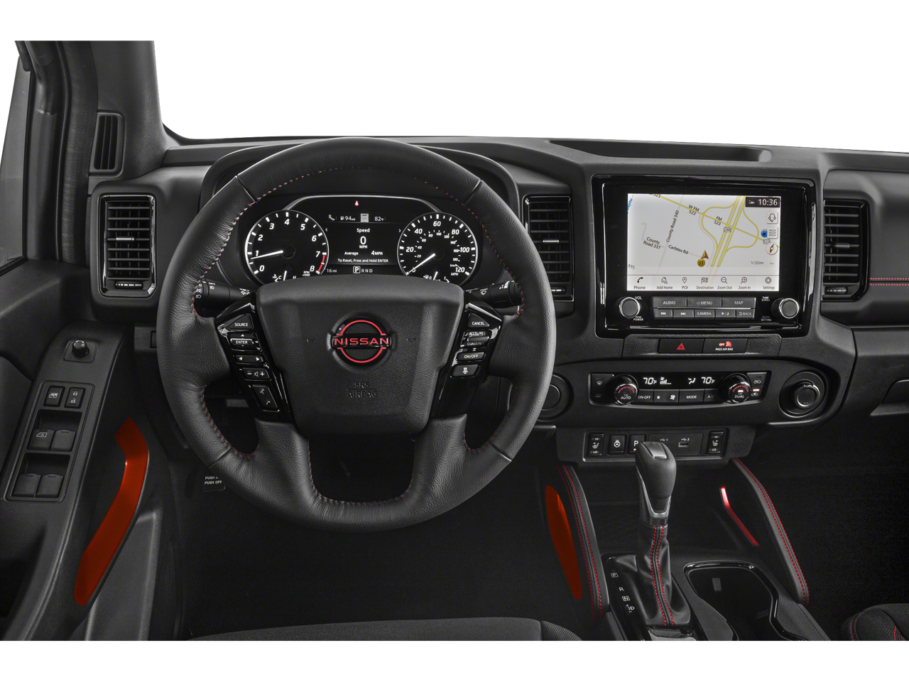 THIS VEHICLE INCLUDES THE FOLLOWING FEATURES AND OPTIONS: Fender Audio Package (Fender Premium Audio System w/10 Speakers and Partial Under-Seat Storage Delete), Off-Road Protection Package (All-Season Floor Mats), PRO Convenience Package (Bed Under-Rail Lighting, Heated Steering Wheel, Intelligent Around View Monitor (I-AVM), and Wireless Charging For Personal Devices), Tow Package (T11), 4WD, 17 Painted Alloy Wheels, 3.692 Axle Ratio, 4-Wheel Disc Brakes, 6 Speakers, ABS brakes, Air Conditioning, Alloy wheels, AM/FM radio: SiriusXM, Anti-whiplash front head restraints, Automatic temperature control, Brake assist, Bumpers: body-color, Compass, Delay-off headlights, Driver door bin, Driver vanity mirror, Dual front impact airbags, Dual front side impact airbags, Electronic Stability Control, Electronic Tailgate Lock, Emergency communication system, Front anti-roll bar, Front Bucket Seats, Front Center Armrest, Front dual zone A/C, Front fog lights, Front reading lights, Front wheel independent suspension, Fully automatic headlights, Illuminated entry, Knee airbag, Leather Shift Knob, Leather steering wheel, Low tire pressure warning, Navigation System, NissanConnect featuring Apple CarPlay and Android Auto, Occupant sensing airbag, Off-Road Style Step Rails, Overhead airbag, Overhead console, Panic alarm, Passenger door bin, Passenger vanity mirror, Power door mirrors, Power driver seat, Power steering, Power windows, PRO Embroidered Premium Cloth Seat Trim, PRO-4X Carpeted Floor Mats, PRO-4X Mud Flaps, Radio data system, Radio: 1CD/SXM/AM/FM/AUX/USB/MP3/WMA Audio System, Rear anti-roll bar, Rear seat center armrest, Rear side impact airbag, Rear step bumper, Remote keyless entry, Security system, Speed control, Speed-sensing steering, Split folding rear seat, Steering wheel mounted audio controls, Tachometer, Tilt steering wheel, Traction control, Trip computer, Variably intermittent wipers, and Voltmeter.